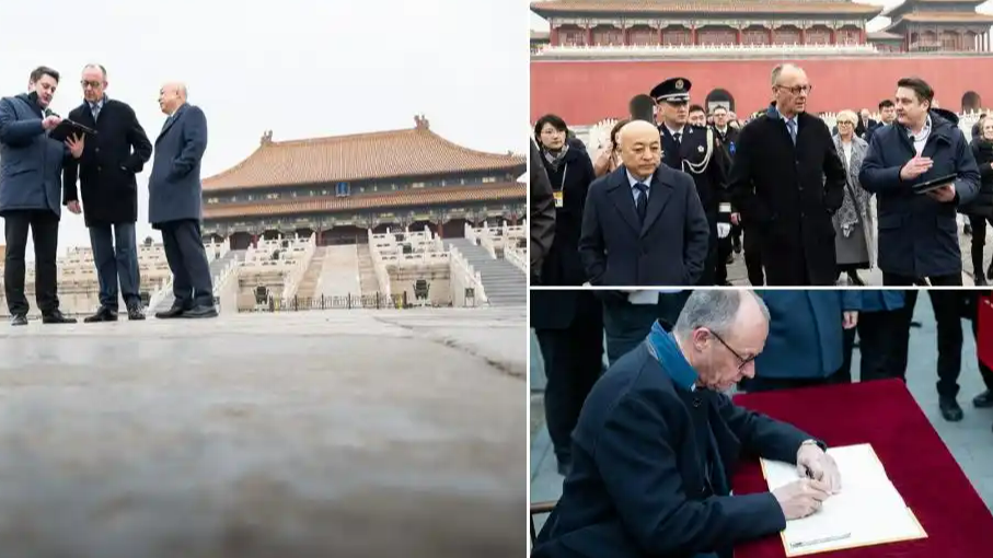 默茨参观故宫亲笔留言:一马当先